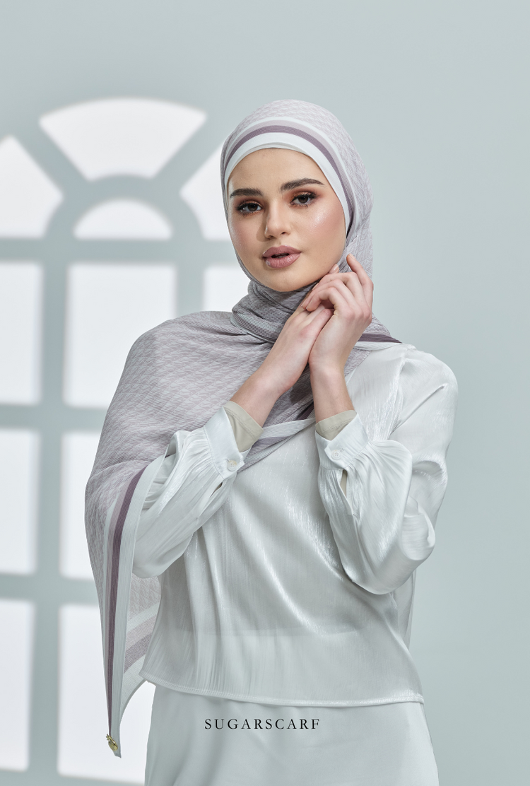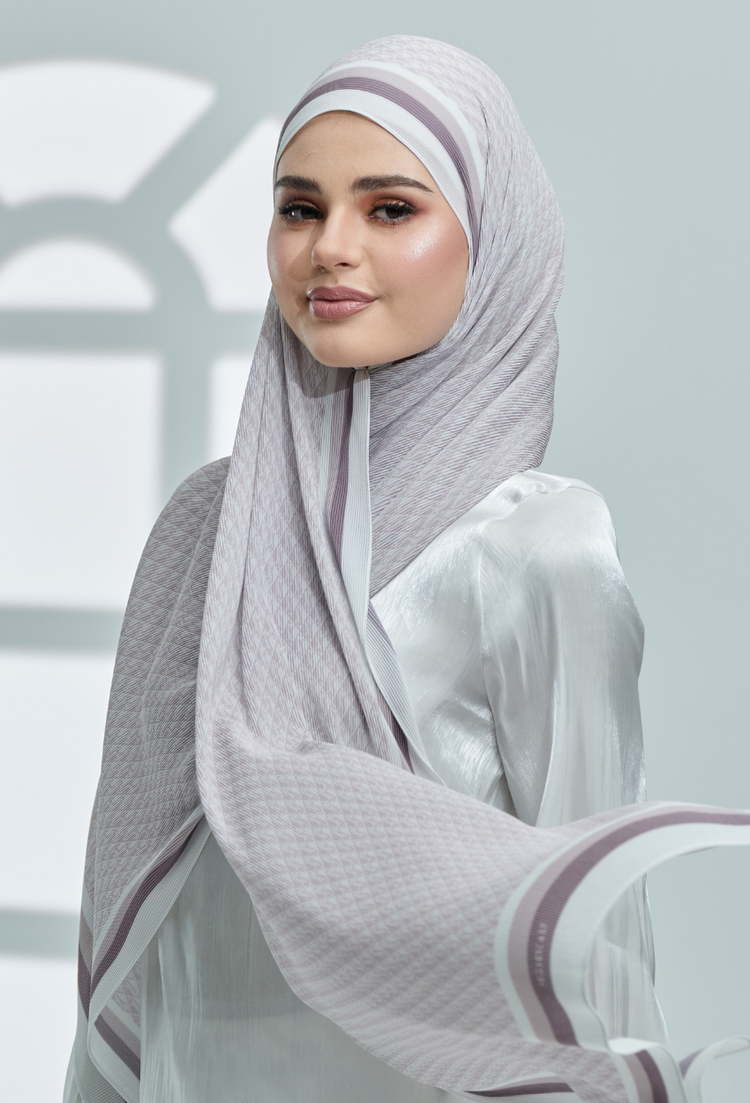 YES DEFECT ( Full Wide Pleats Shawl ) Classy Monogram ( ASH PURPLE )
