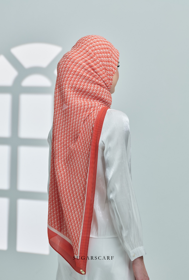 ( Full Wide Pleats Shawl ) Classy Monogram ( ORANGE )