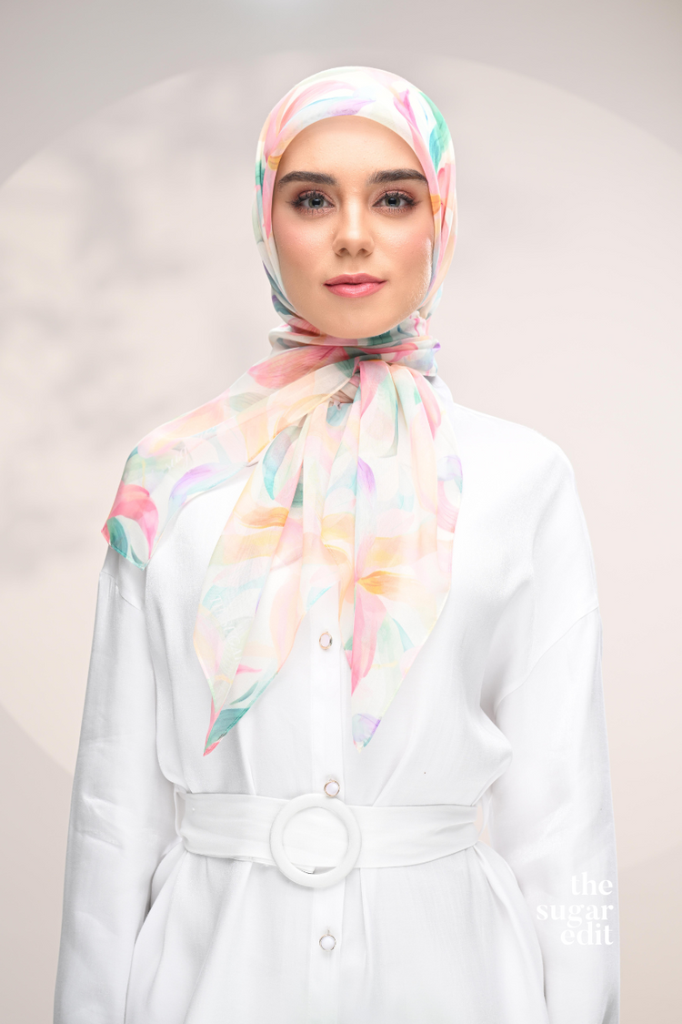 Introducing the Blooming Japanese cotton square scarf collection, featuring the stunning "Blooming." This exquisite scarf showcases vibrant floral motif patterns meticulously designed to make a bold statement, perfect for elevating your office attire. Crafted from premium Japanese cotton, our best seller collection combines elegance and comfort, ensuring you stand out with confidence and style in any professional setting.